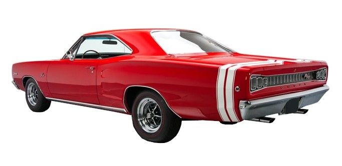 The 1968 Coronet features a dual stripe that wrapped around the left & right quarter panel stripes and accross the trunk stripe. Commonly referred to as the Bumble Bee Stripe.